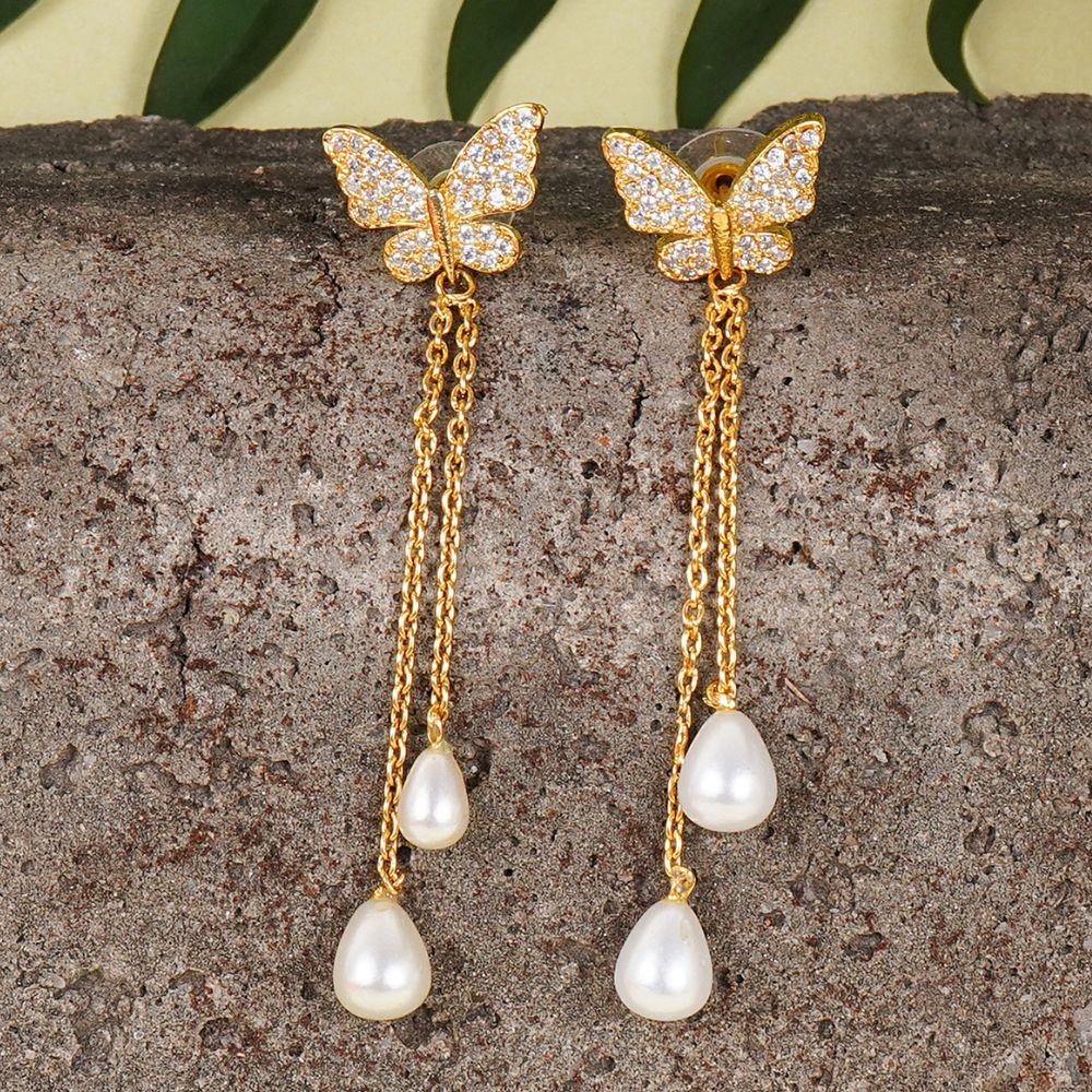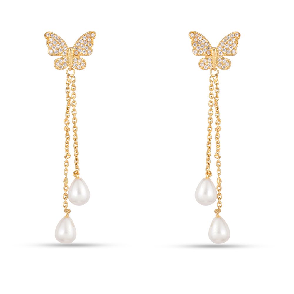 Product Name: Gold Plated CZ Trendy Butterfly Pearl Earrings