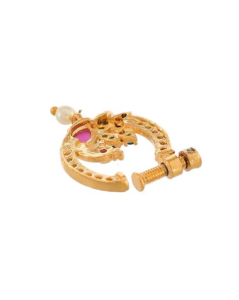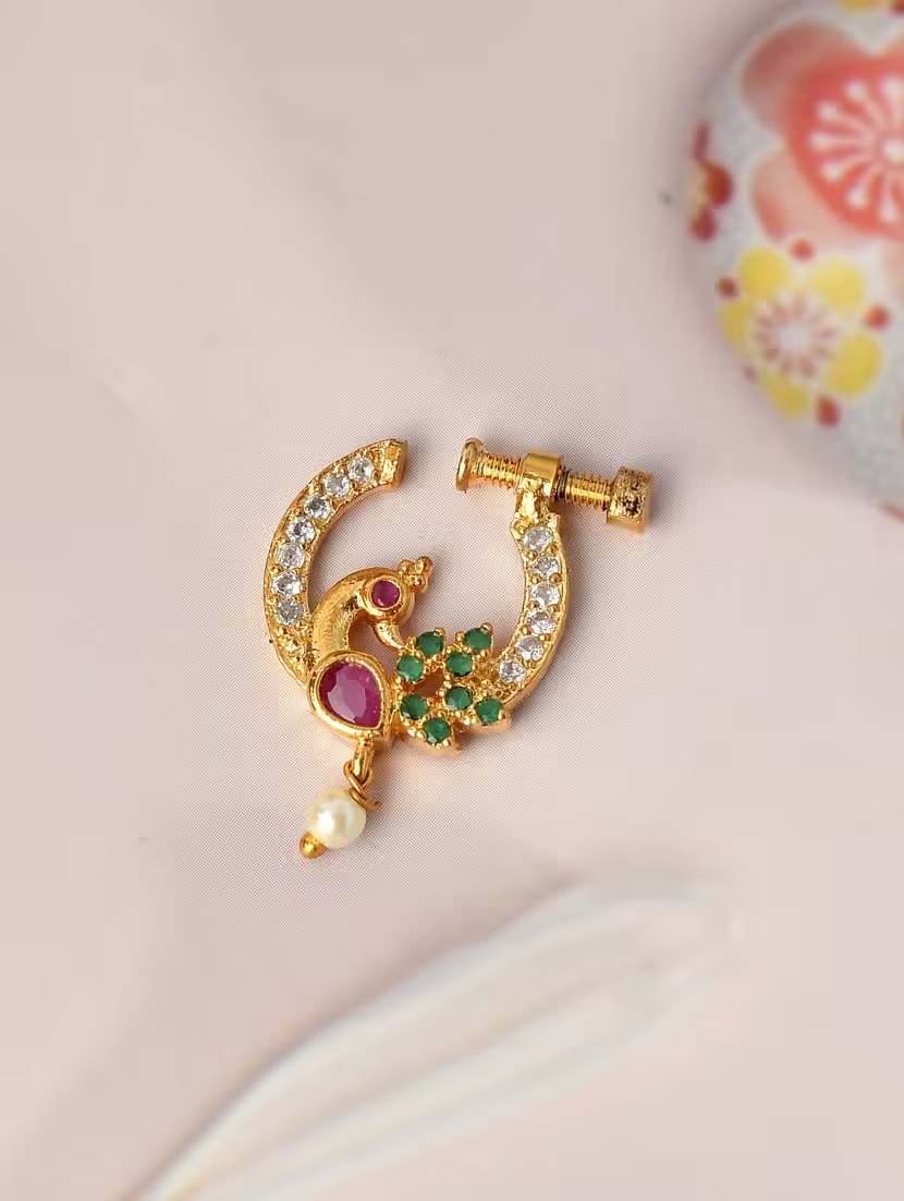Zeello Fashion Stylish Fancy Peacock Shape Maharashtrian Screw Press Nath For Girl & Women
