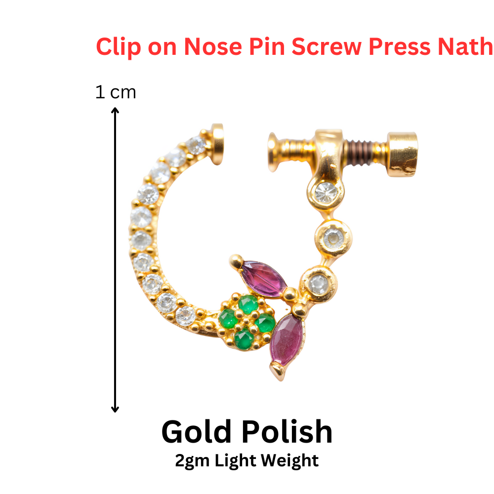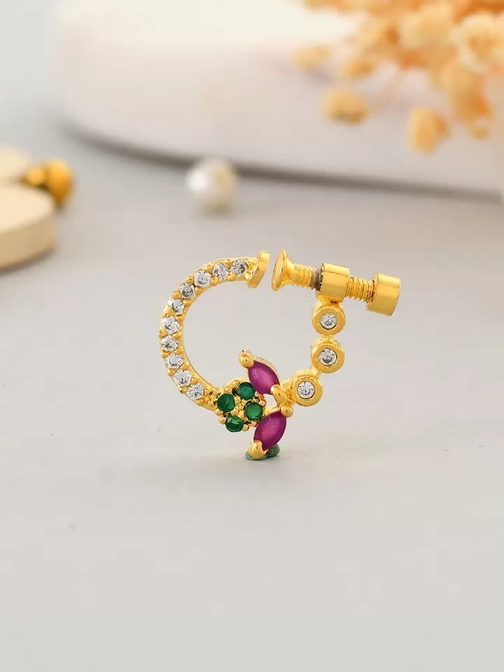 Gold Plated CZ Beautiful Nose Rings | Ethnic Screw Press Nose Jewelry for Women