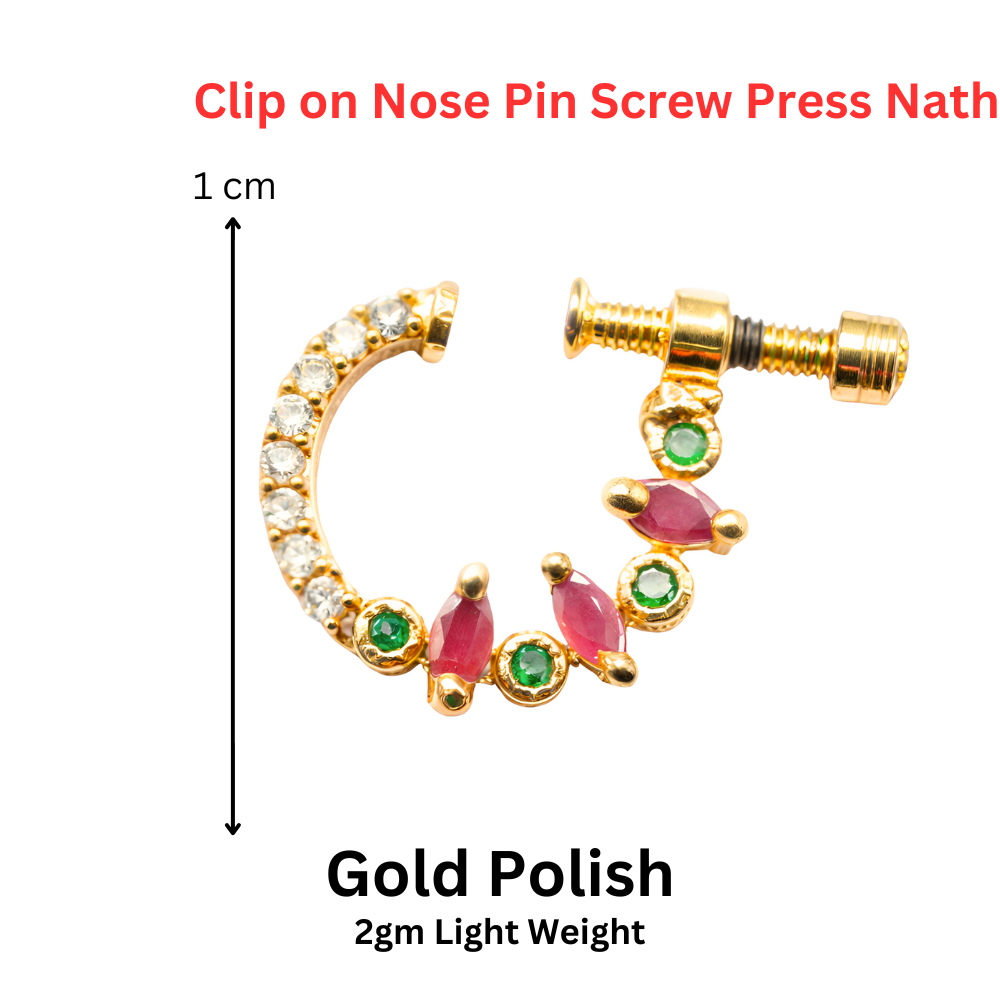 Adorn your beauty with a perfect blend of tradition and elegance through our Gold Plated CZ Screw Press Nose Rings for Girls and Women. Designed to add grace to your facial features, these amazing nose rings are more than just jewellery—they are a daily expression of identity, femininity, and confidence. Whether you’re looking for a classic look or something festive, these nose rings are the ideal accessory to enhance your charm with ease and brilliance.