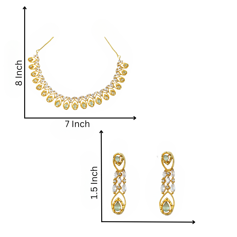 Elegant Gold Plated CZ Green Stone Necklace Set with Earrings for women.